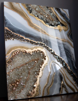 Explore the beauty of resin as you design your canvas using a wide variety of dyes, pigments, crystals, gold/silver leaf, glitters, metallic flakes, and other embellishments.